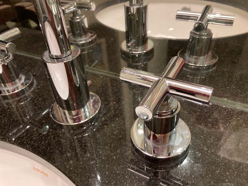 No se ve nadie ahí. El ancla es más chica. No conocía ese baño aunque ya había estado en él más de una vez. Los lavamanos ahora están a su derecha en lugar de a la izquierda como era antes. La antesala, con pocos muebles pero muy monones, está del otro lado.